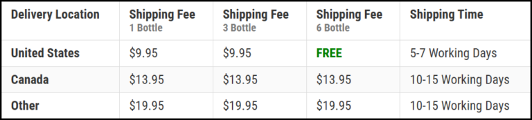 | Delivery Address | Shipping Fee | Shipping Time |